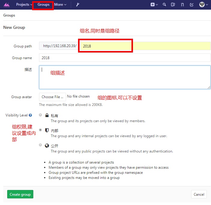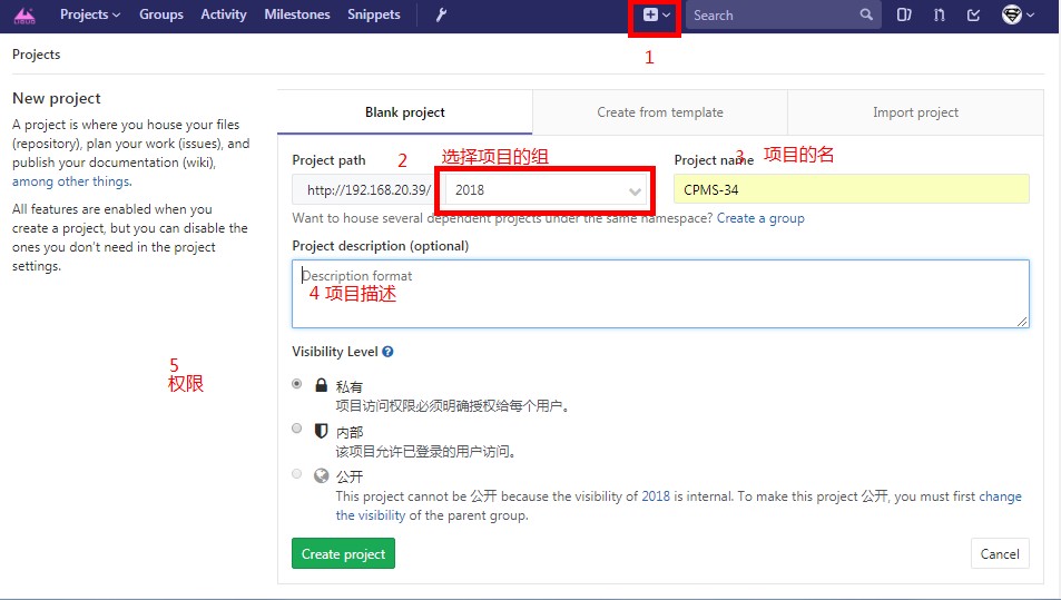 - 管理员创建项目/组在服务器根目录下